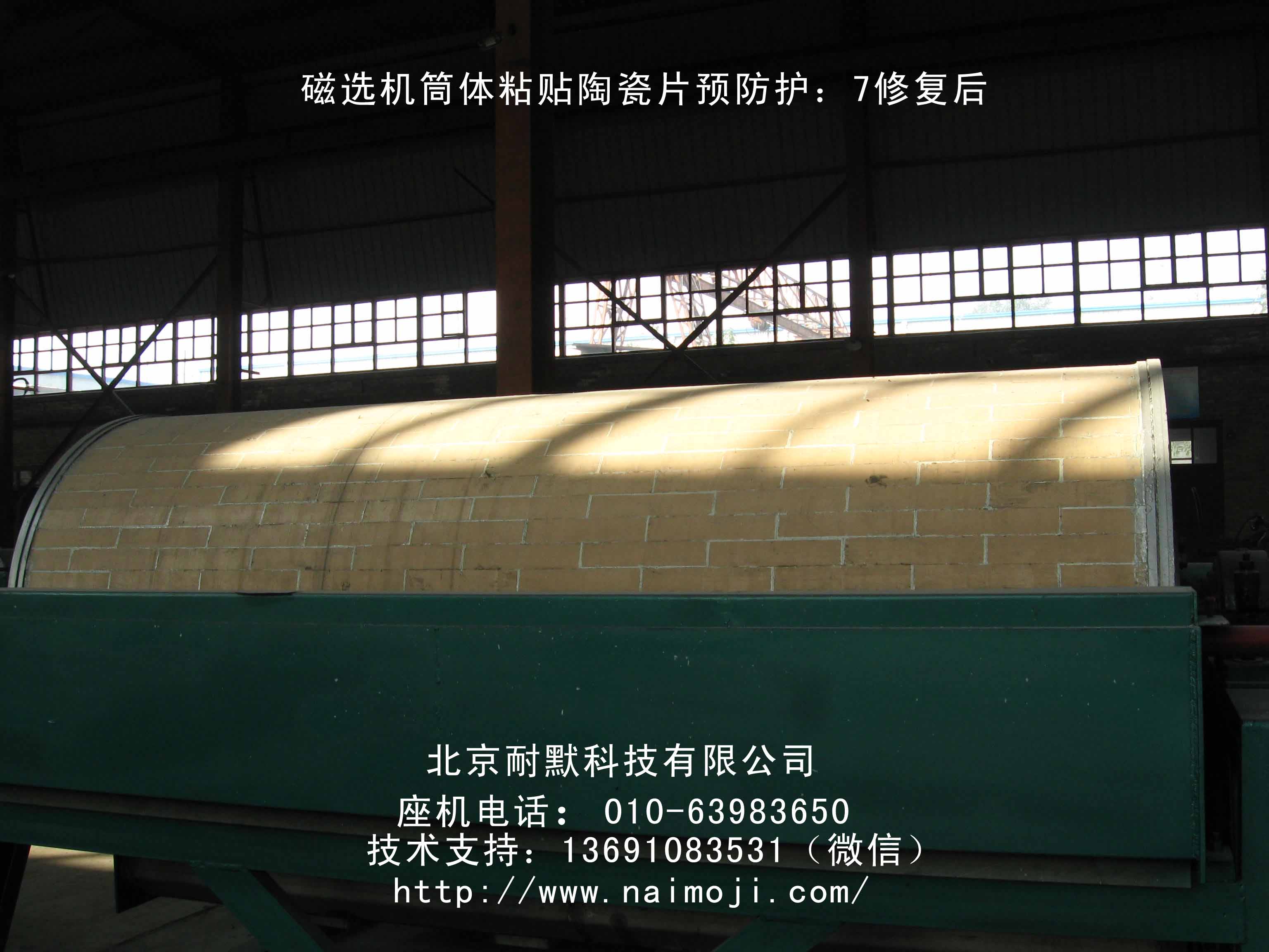 耐磨陶瓷磁选机滚筒结合工艺安全可靠,耐磨性高。耐磨陶瓷复合于筒体、溜槽、低槽或壳体的金属基体上,剪切强度高25MPa(250kg/cm2)耐磨陶瓷及胶粘剂均具有优异的耐酸碱性能,结合牢固不易脱落,不影响磁选机的运用及安全稳定。比传统的包胶皮、橡胶硫化更简单,使用寿命提高十几倍!耐磨陶瓷的标准规格为10×10×3,10×10×1.5,10×10×4,20×20×3,也可根据用户要求定做;